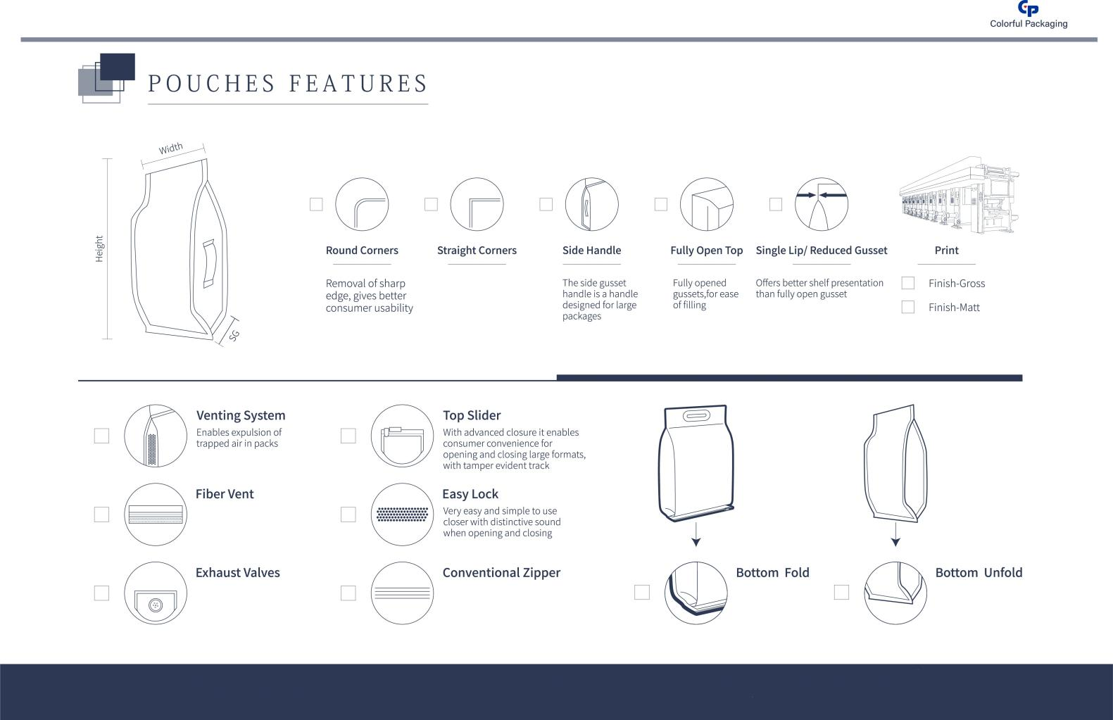 Quad seal bags have a reinforced structure that make them sturdy and suitable for heavier items. Its design features gussets on sides, making the bag expandable for more packaging space. This shape and format makes the bag easy to fill and self-standing as a shelf display. Our gusset bags can also be made more economical and environment-friendly as added benefits to your company.